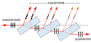 A stack of plates at Brewster's angle to a beam reflects off a fraction of the s-polarized light at each surface, leaving (after many such plates) a mainly p-polarized beam.[4]