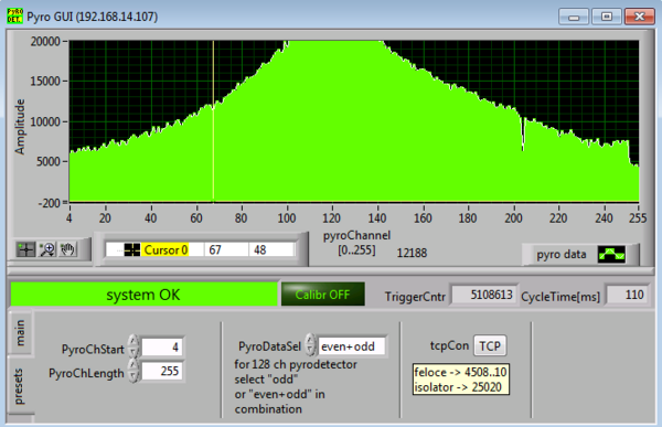 - endCh' chould be set normally at 256, if selected in the pyro GUI to even or odd the channels should be set to 128 but at the moment not advisable.