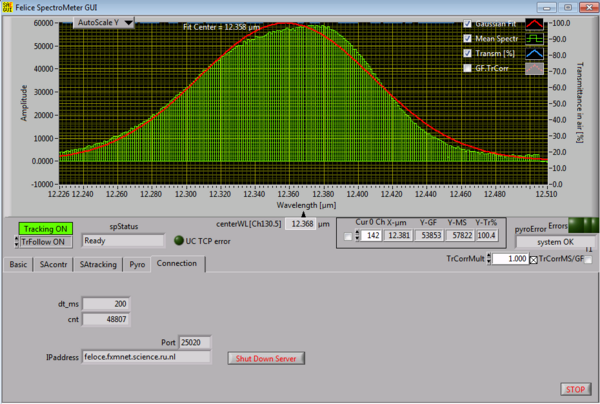 [edit | edit source]For the Felice spectrum analyzer there are two GUI interfaces "FELICE spectroclient.exe" and "sa_flc_pyro_gui_v101.exe". The program "sa_flc_pyro_gui_v101.exe" is only needed in special cases.
