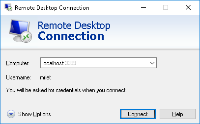 Start Remote Desktop Connection Connect to localhost:3399