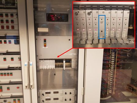 To do this, open the modulator system, and press “localâ€. Switch the top line of buttons off (specifically "high voltage", "line", "klystron", "cooling" and "mode"). In the cabinet next door, press the illuminated "error" button to clear it. Back on the modulator system, press "remote". Everything on the top line should now latch on. The cabinet should now look like below.