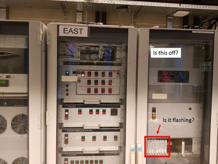 * Is the pressurized air (perslucht) still available? Check the (upper) pressure gauge in the FTA antehall (above your head, just behind the main technical area security doors).