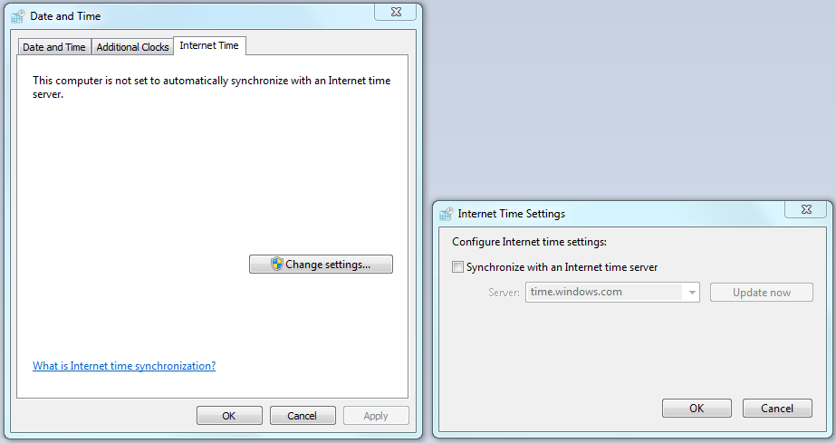 [edit | edit source]To avoid interference between synchronizing the windows clock with an internet time server and the isolator clock, it is recommended to switch off the built-in windows clock internet synchronization.