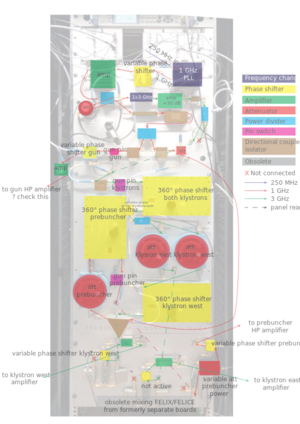 Photo of FELIX Low level RF panel with descriptions