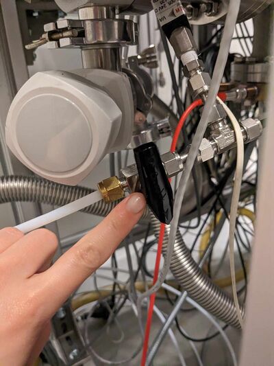 Should a power outage occur and the setup vents, please open the nitrogen valve [pictured below]. Call/message Olga at +31 627168702.